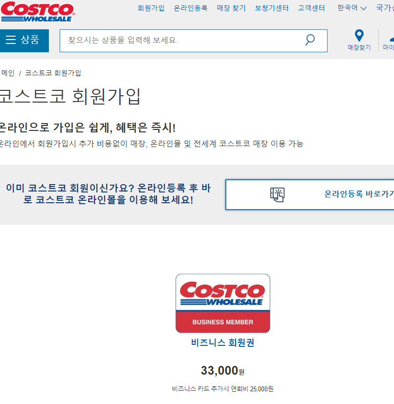 코스트코 온라인 쇼핑몰은 온라인으로 회원가입, 매장 찾기, 온라인 쇼핑이 가능한 홈페이지입니다.